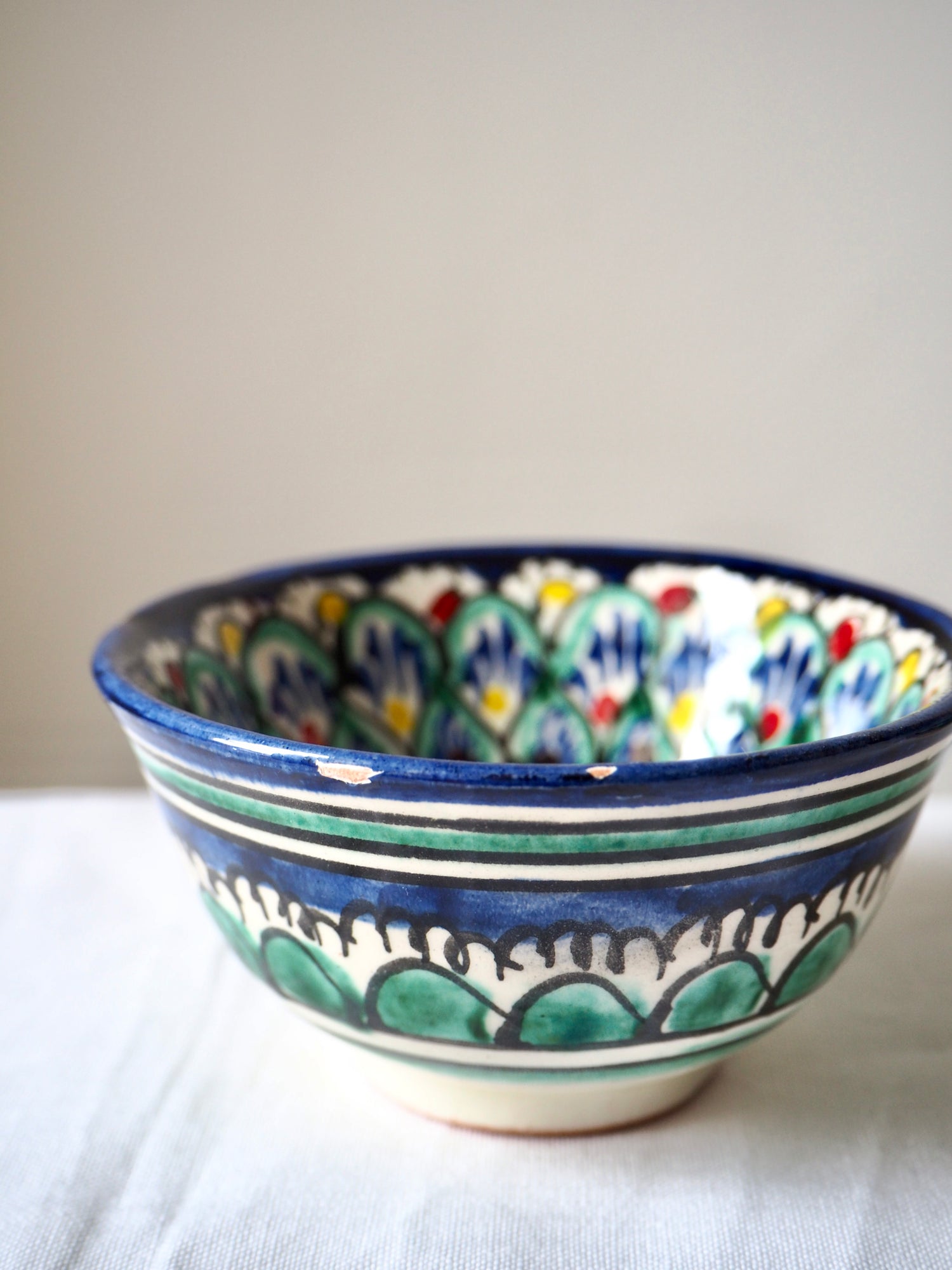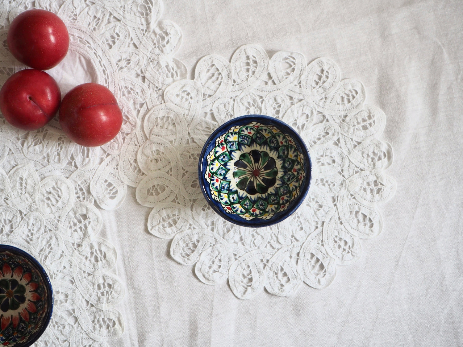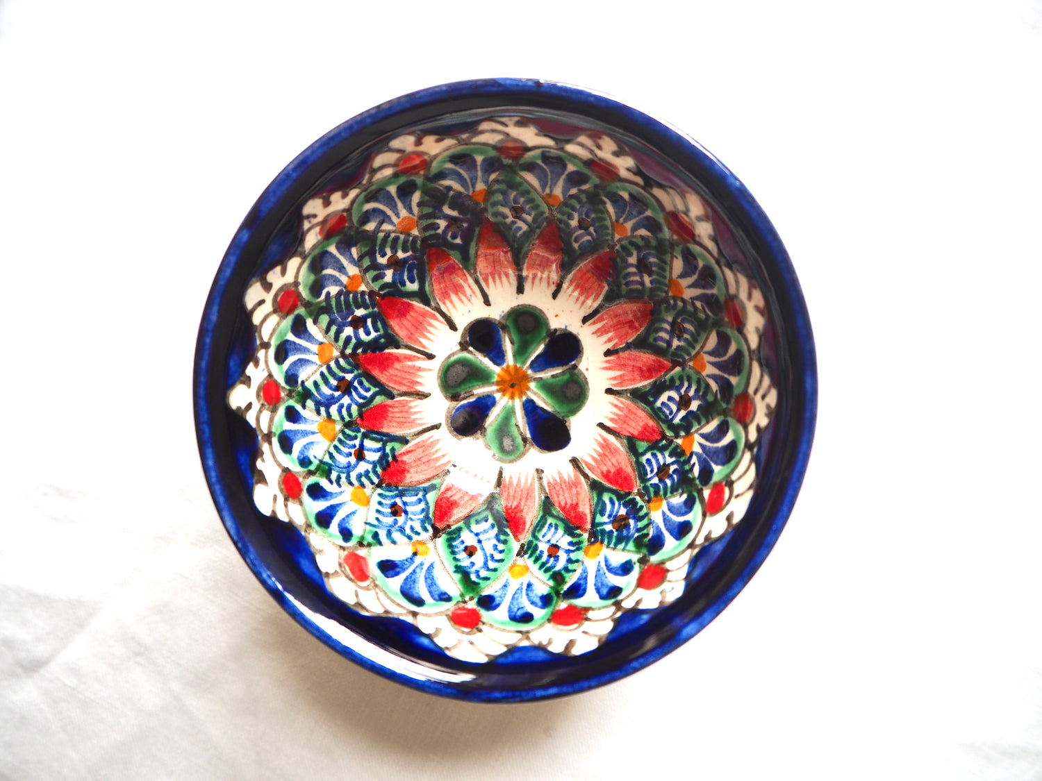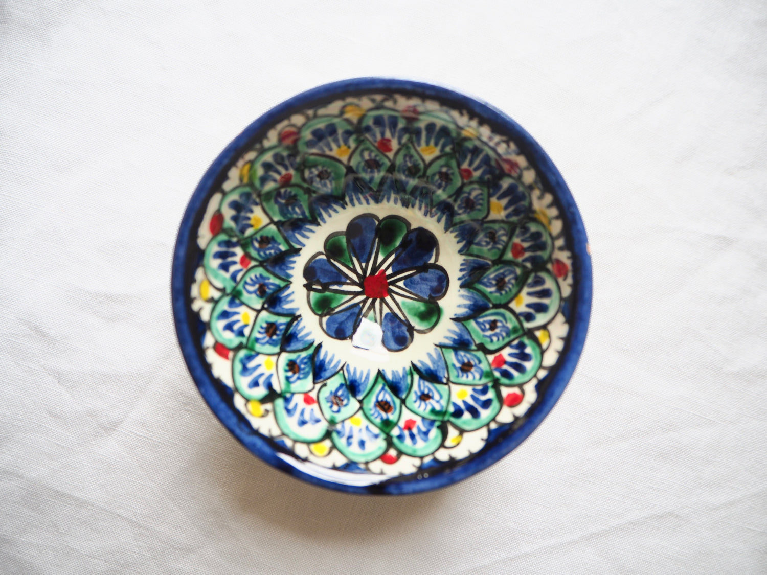 Ensemble de trois petites tasses à café ou coupelle à sauce en céramique de Richtan, artisanat traditionnel d'Ouzbékistan.