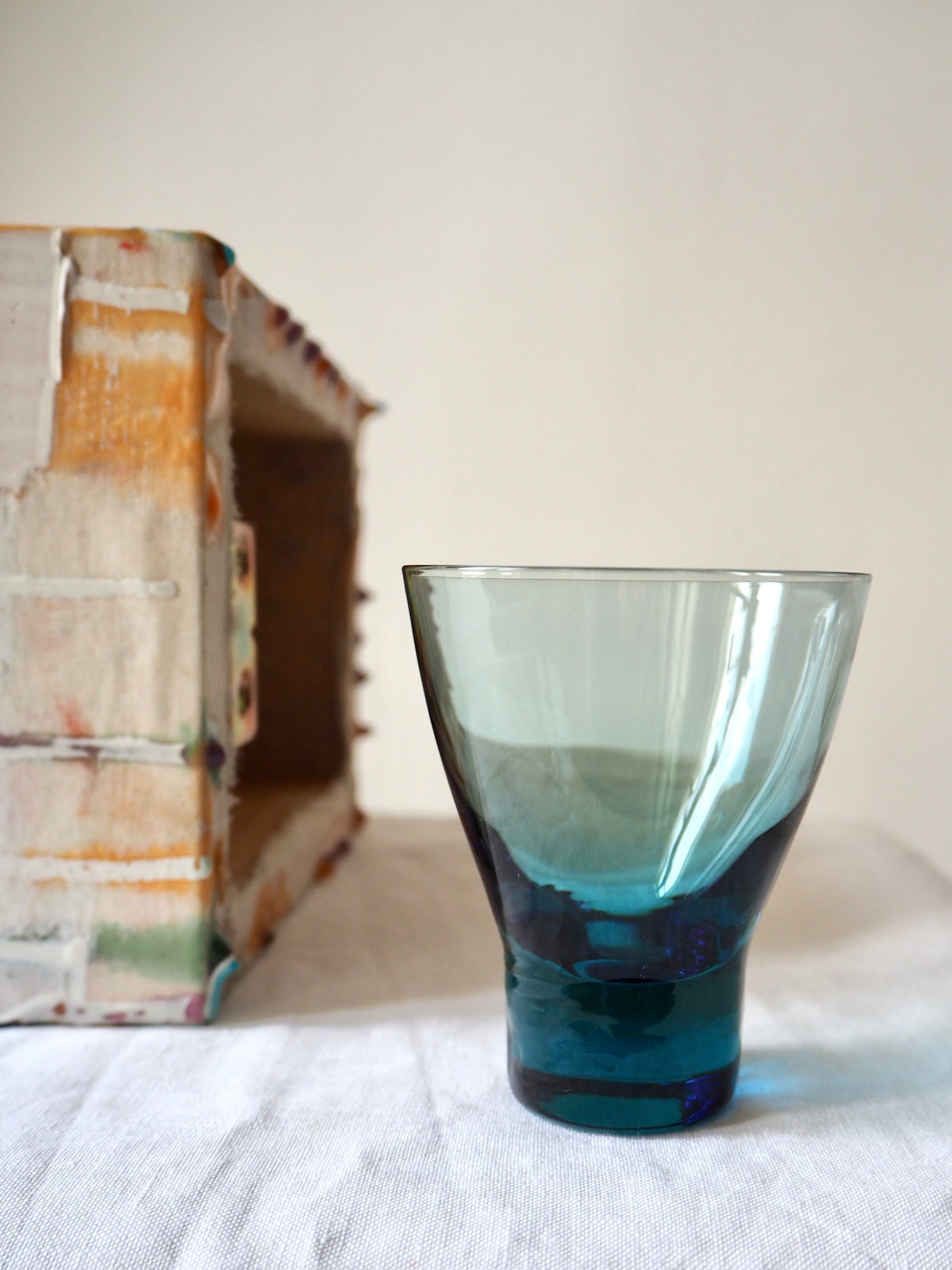 Ensemble de 6 verres vintages, forme conique et couleur bleu fumée.