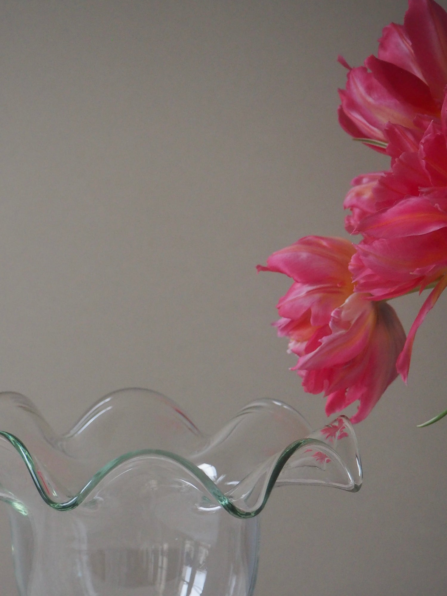 Elégant photophore en verre soufflé bouche avec une large ouverture corolle, estampillé Blue Lagon. Il s'utilise également comme joli vase.