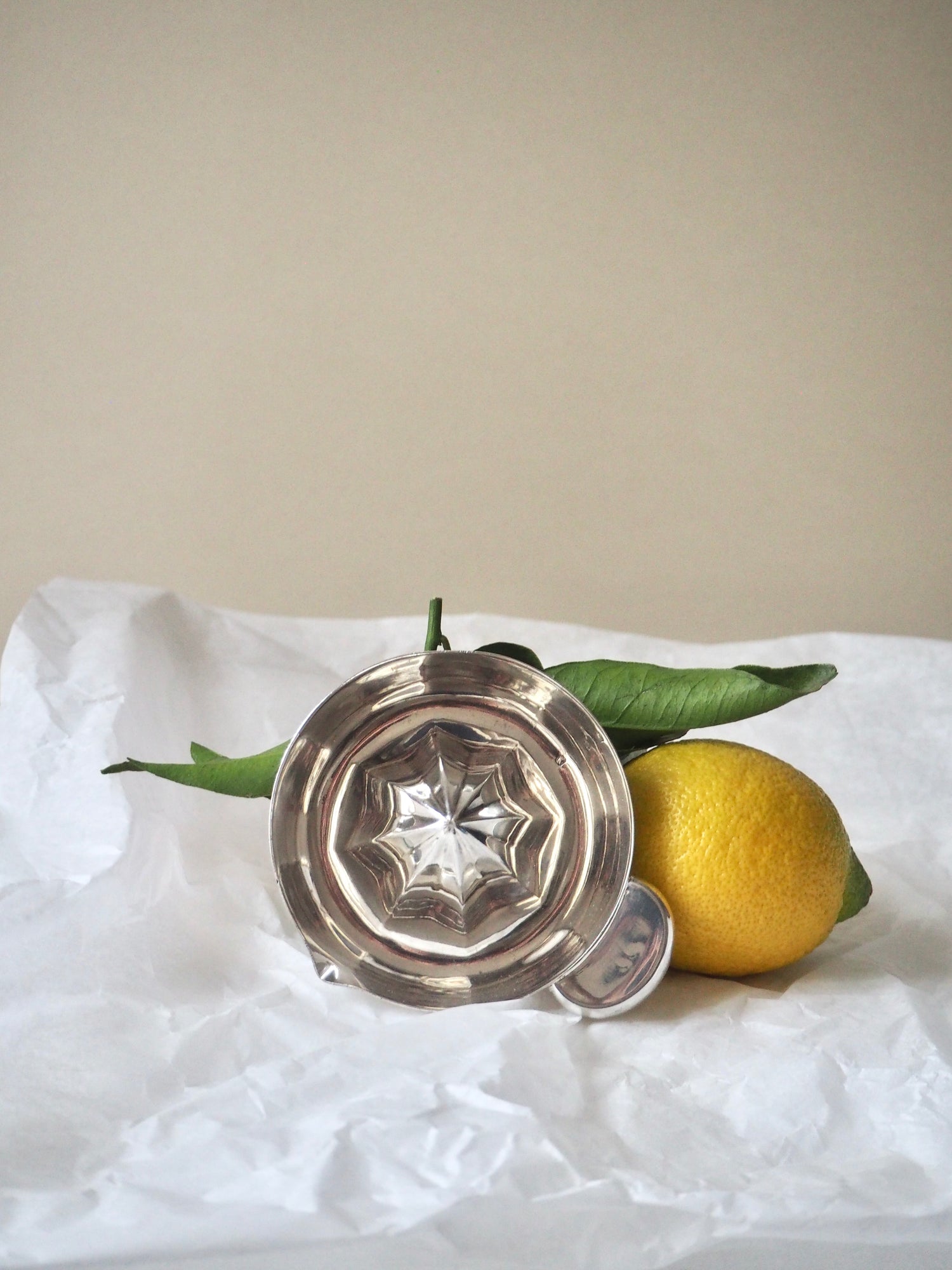 Elégant presse agrume en argent massif 925, gravé d'un poinçon de minerve.