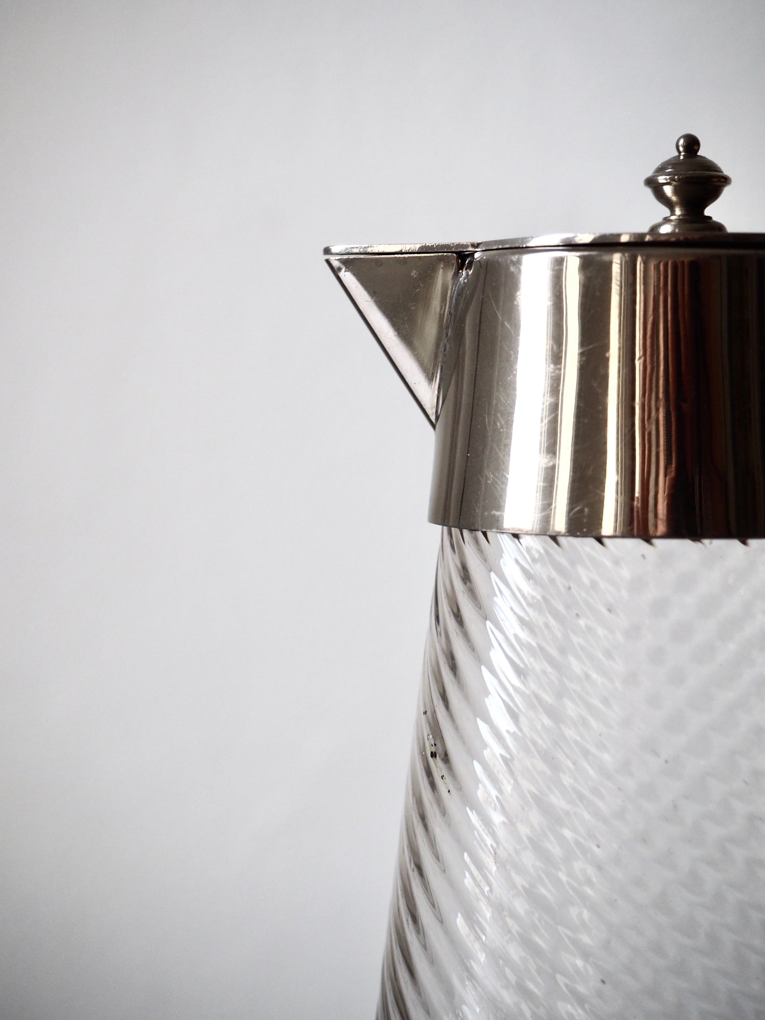Elle est en excellent état, quelques tâches et signes d'usures sont à noter sur le métal et à l'intérieur de la carafe.
