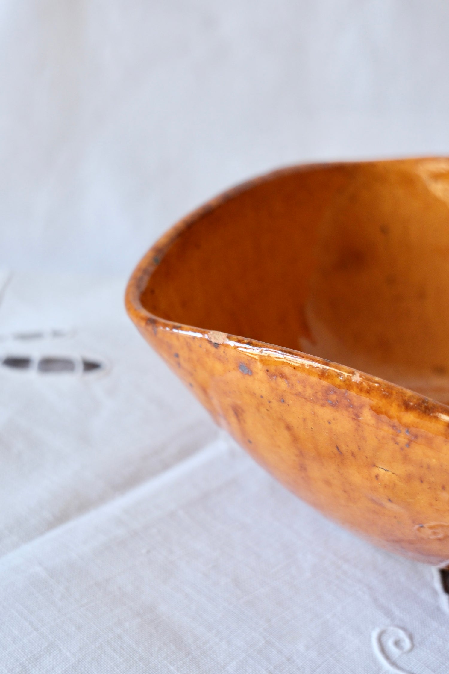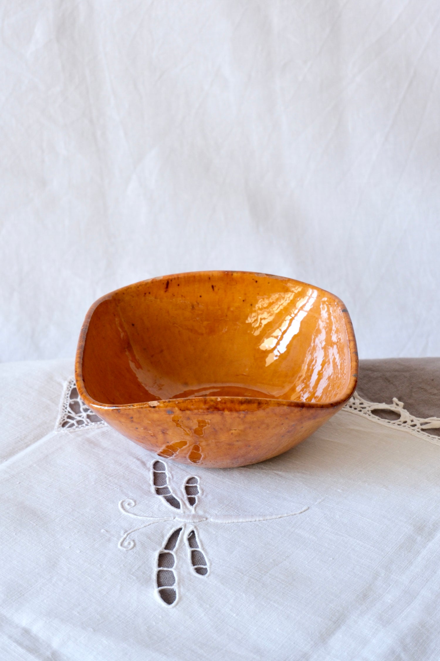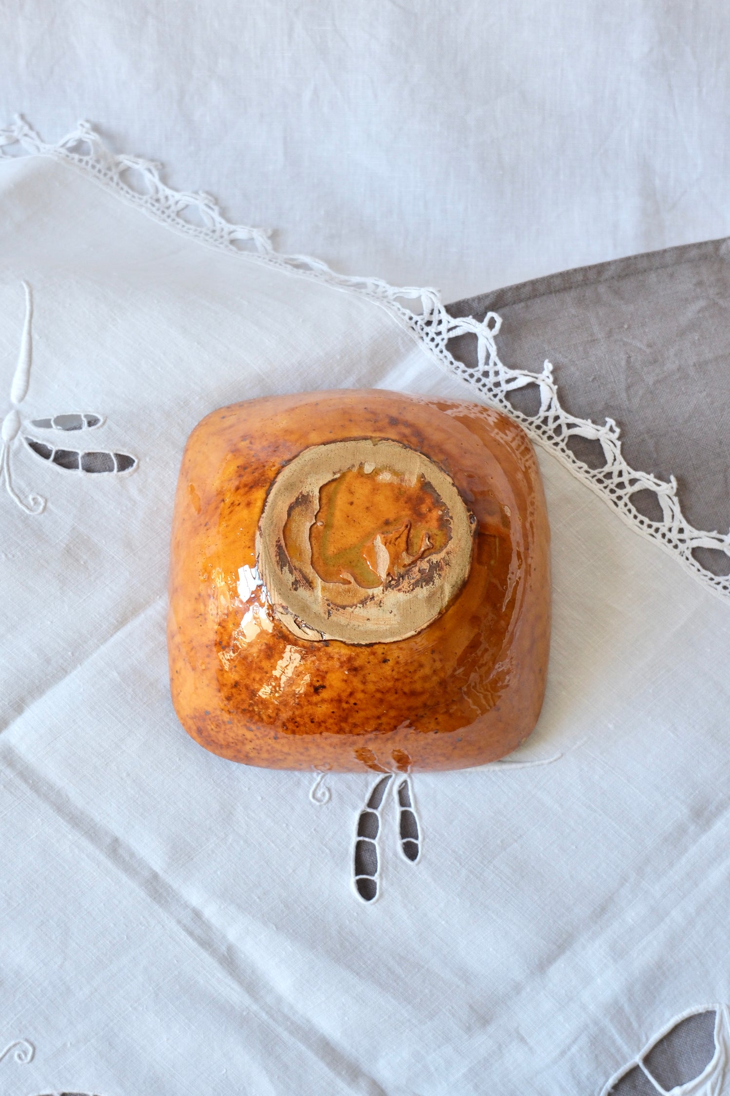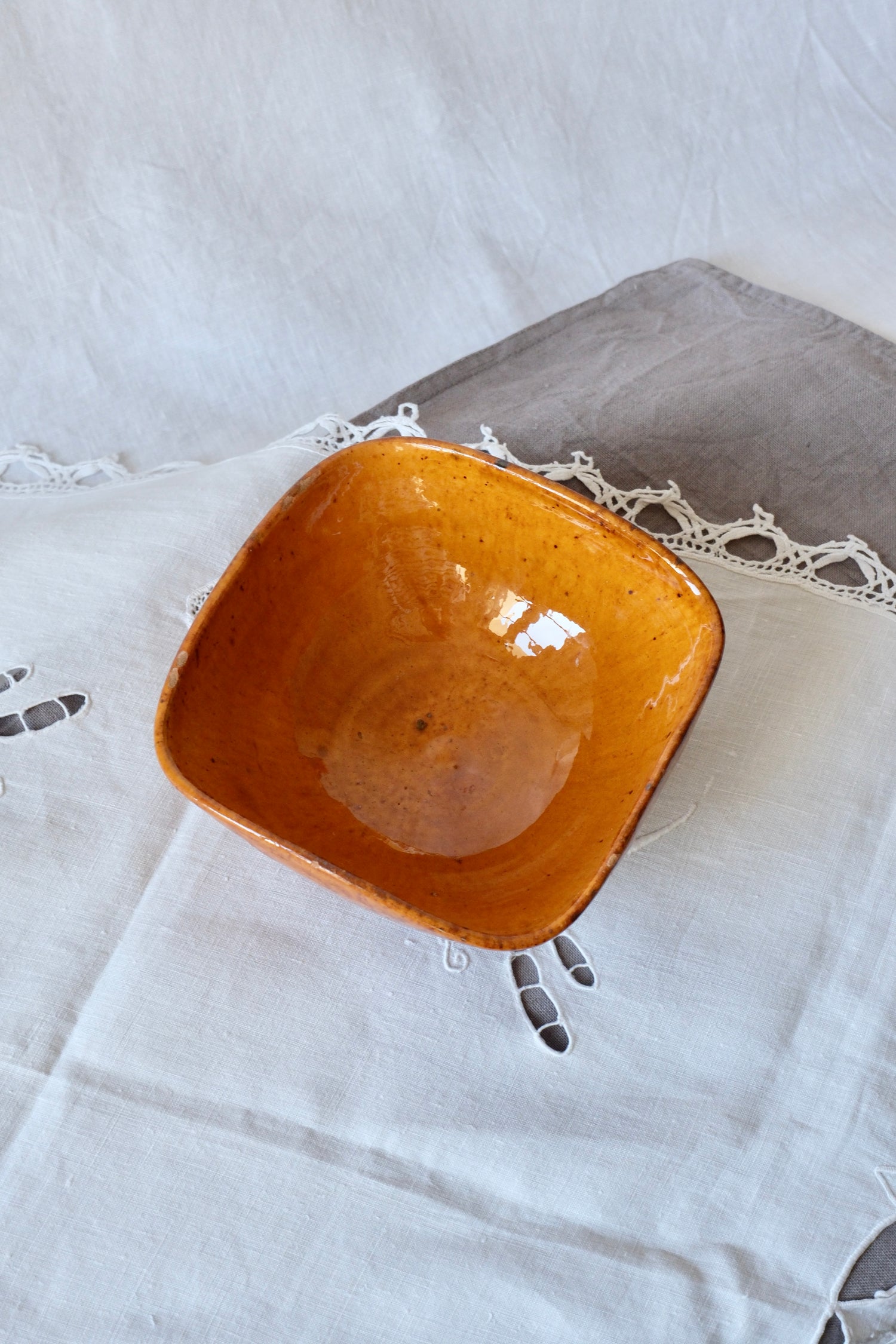 Coupelle forme carré en céramique jaune ocre attribuée à Biot.