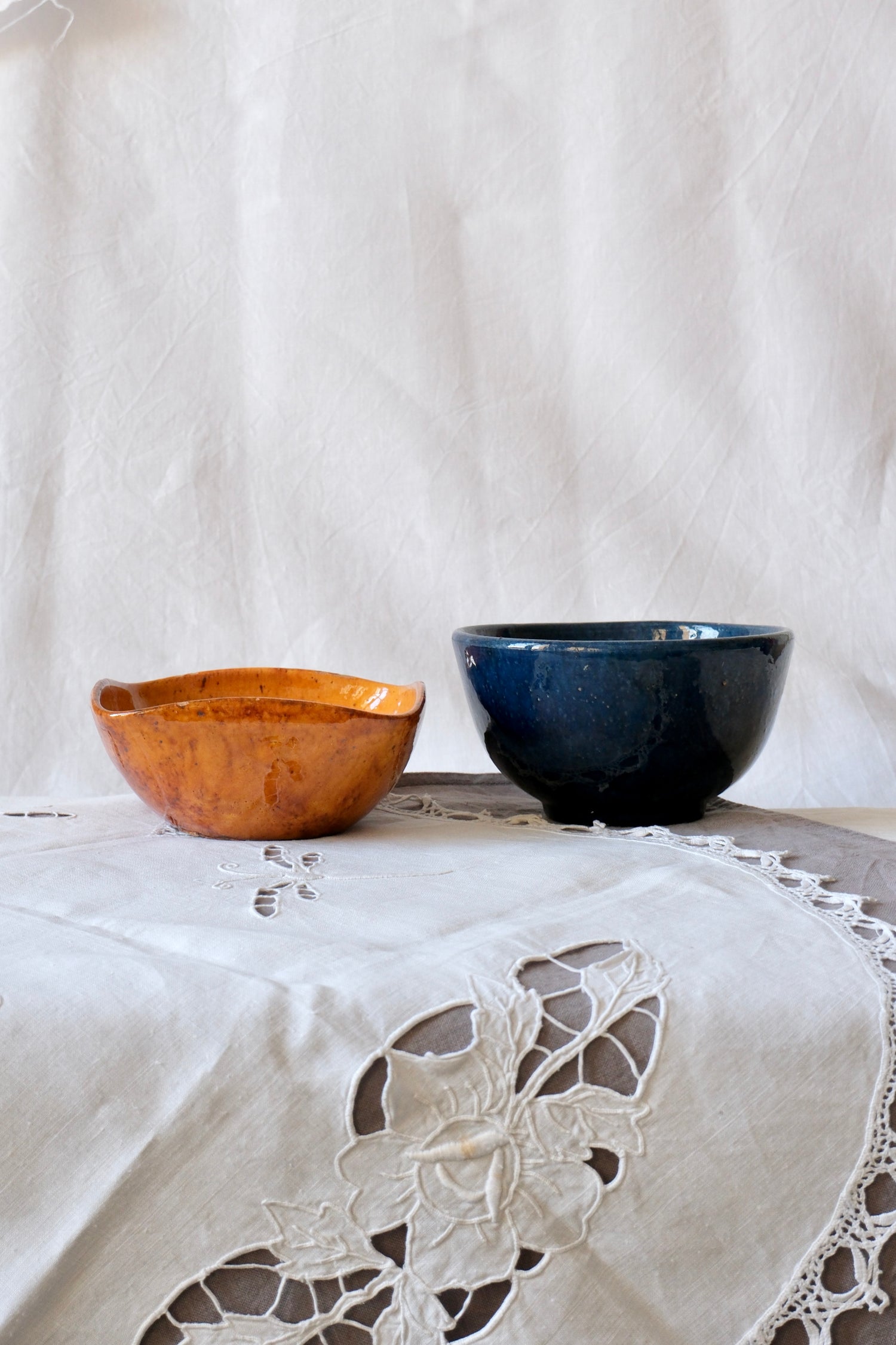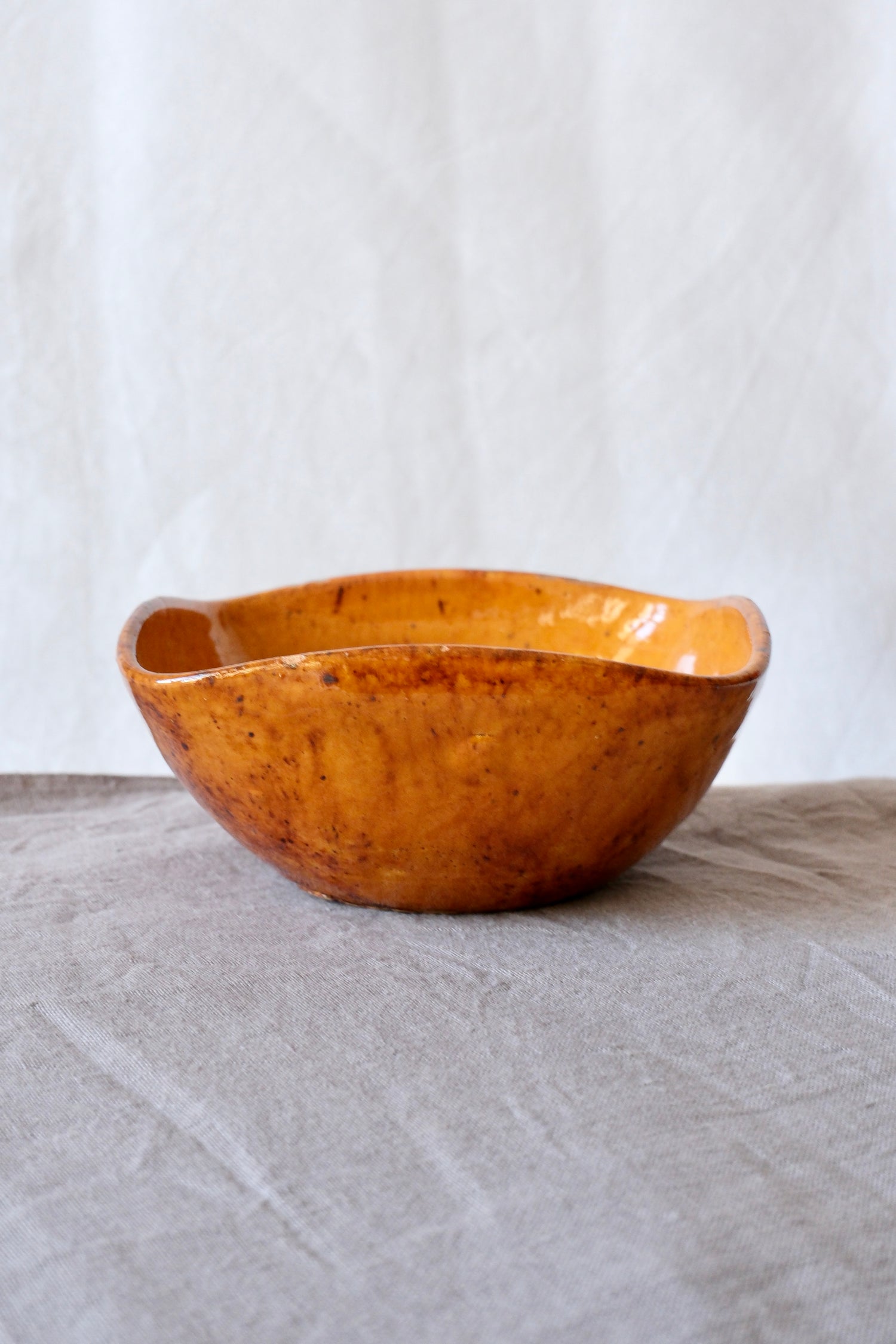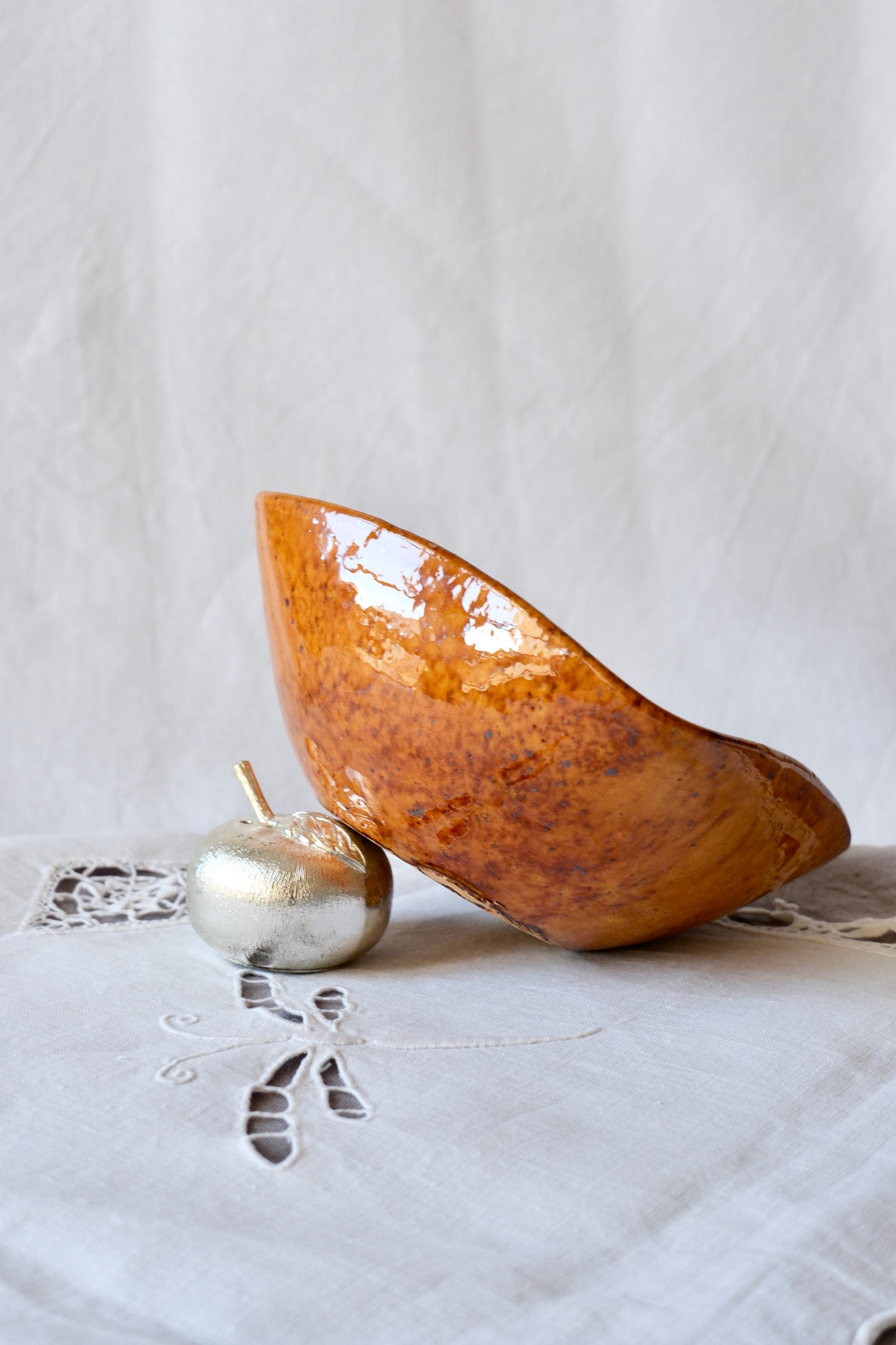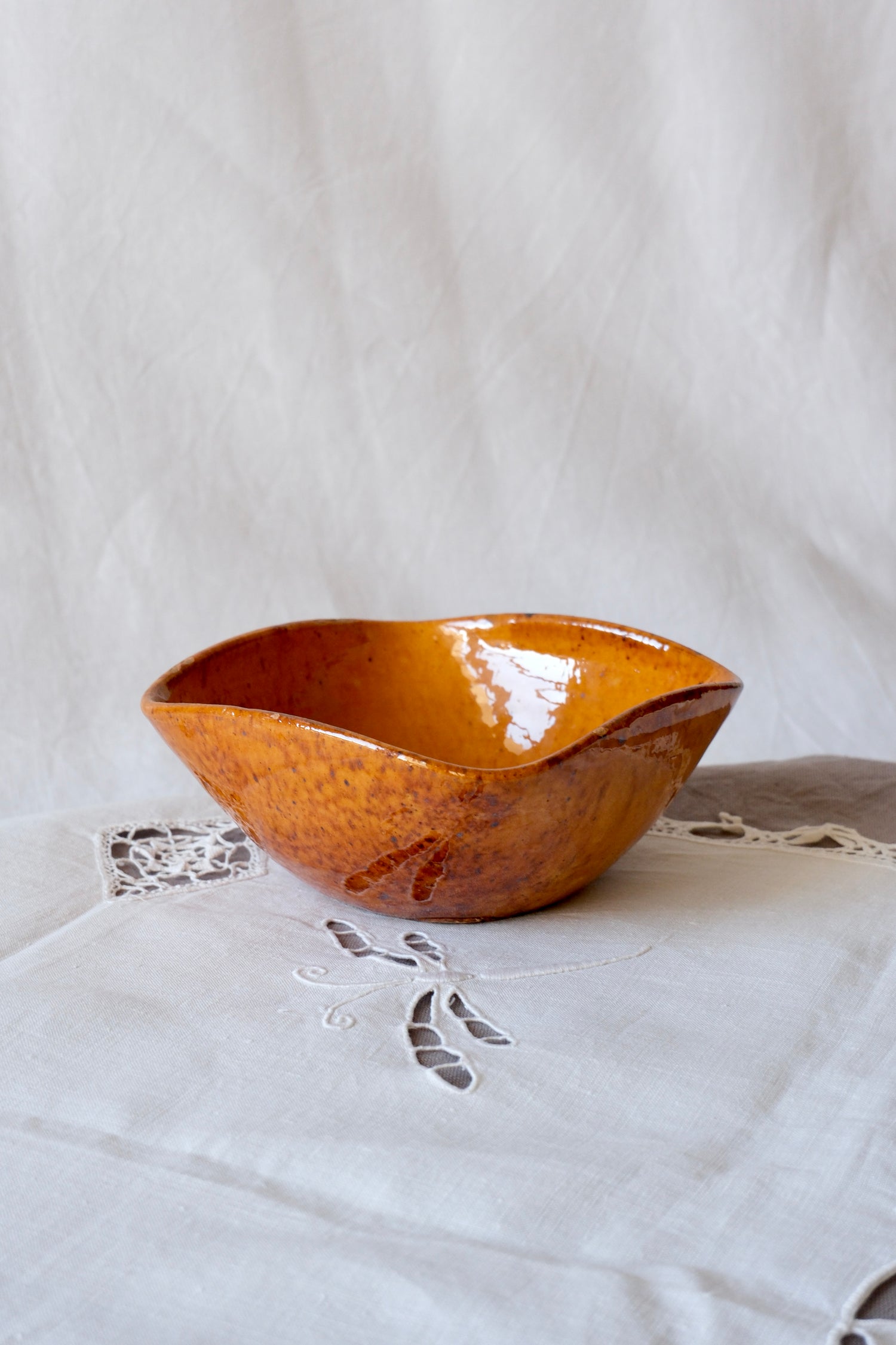 Coupelle forme carré en céramique jaune ocre attribuée à Biot.