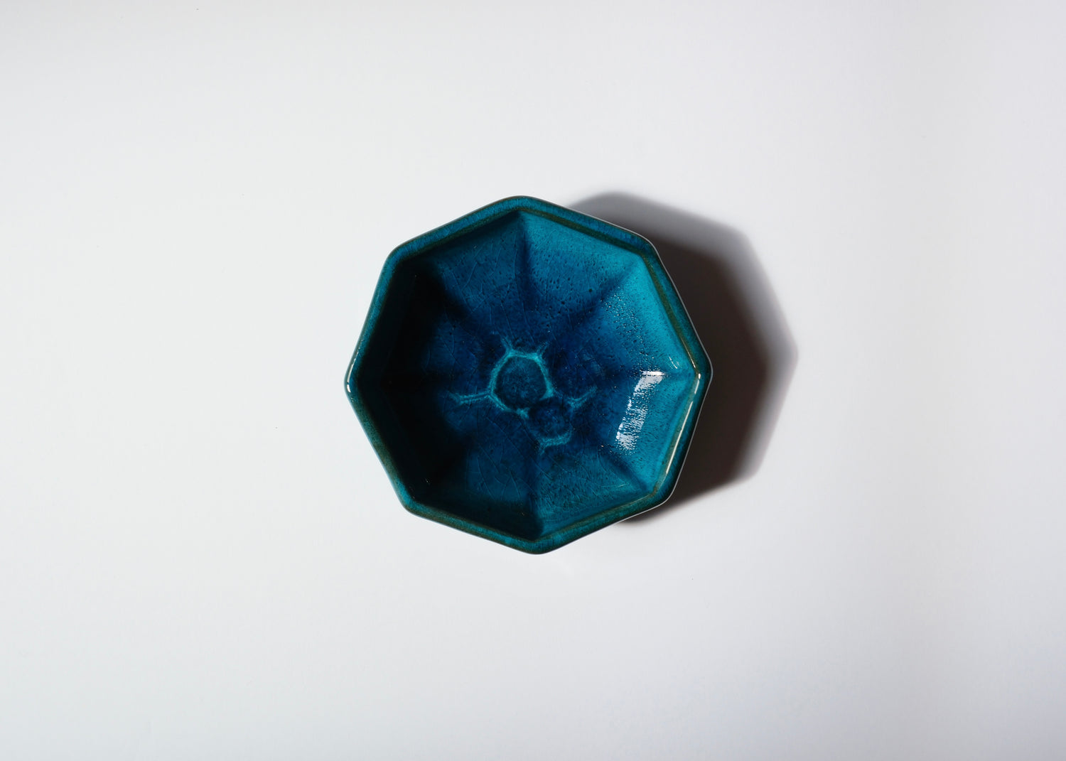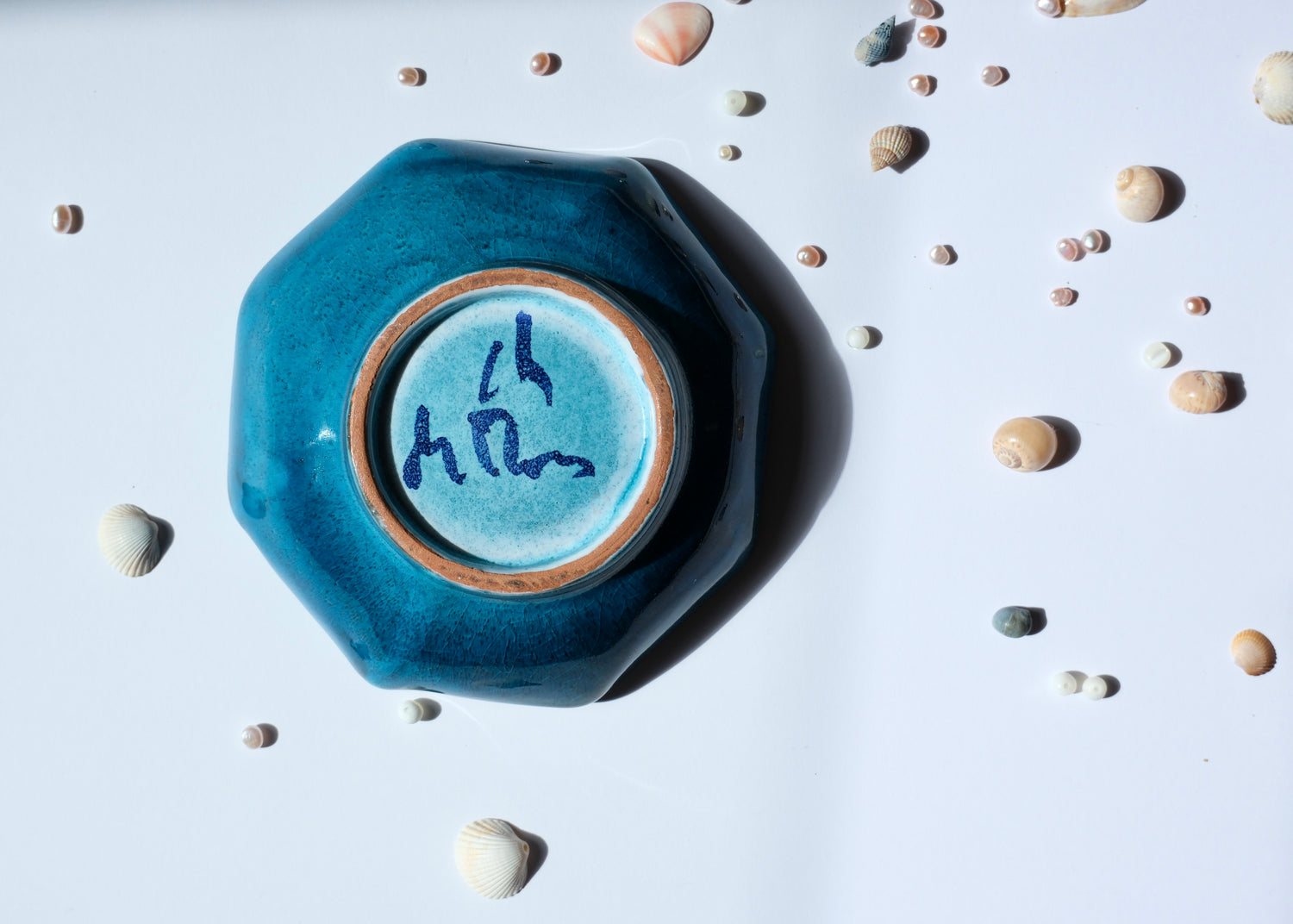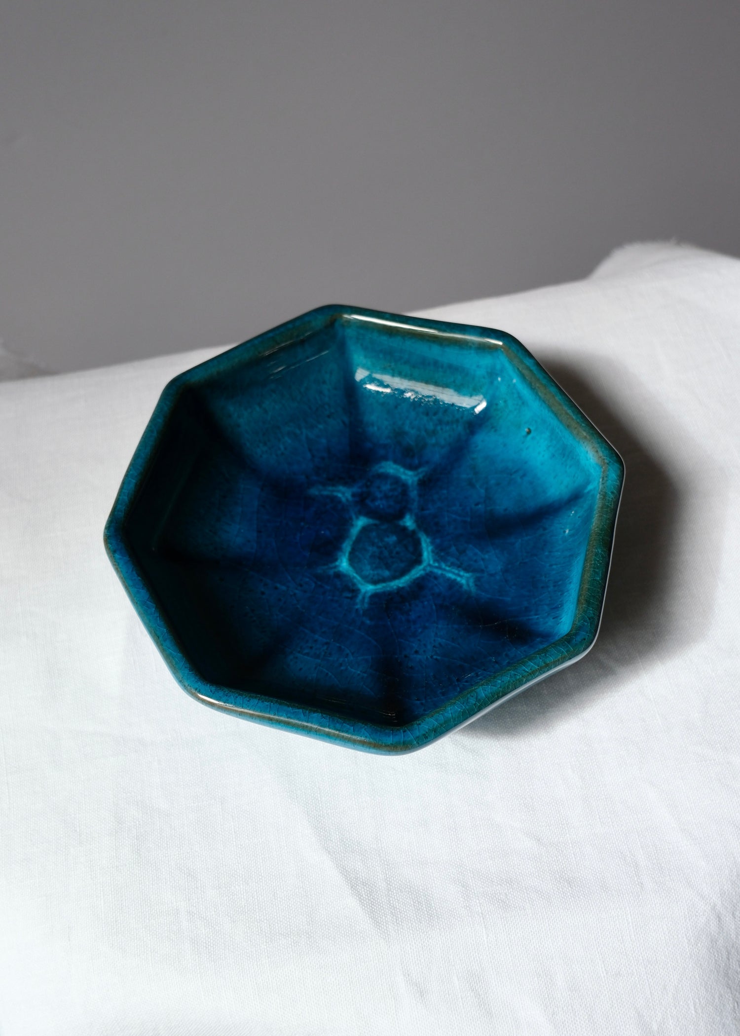 Coupelle en céramique bleue tout en nuances, forme octogonale signée Christian de Mons, artiste potier de renom basé à Aix-en-provence dans les année 70/80.