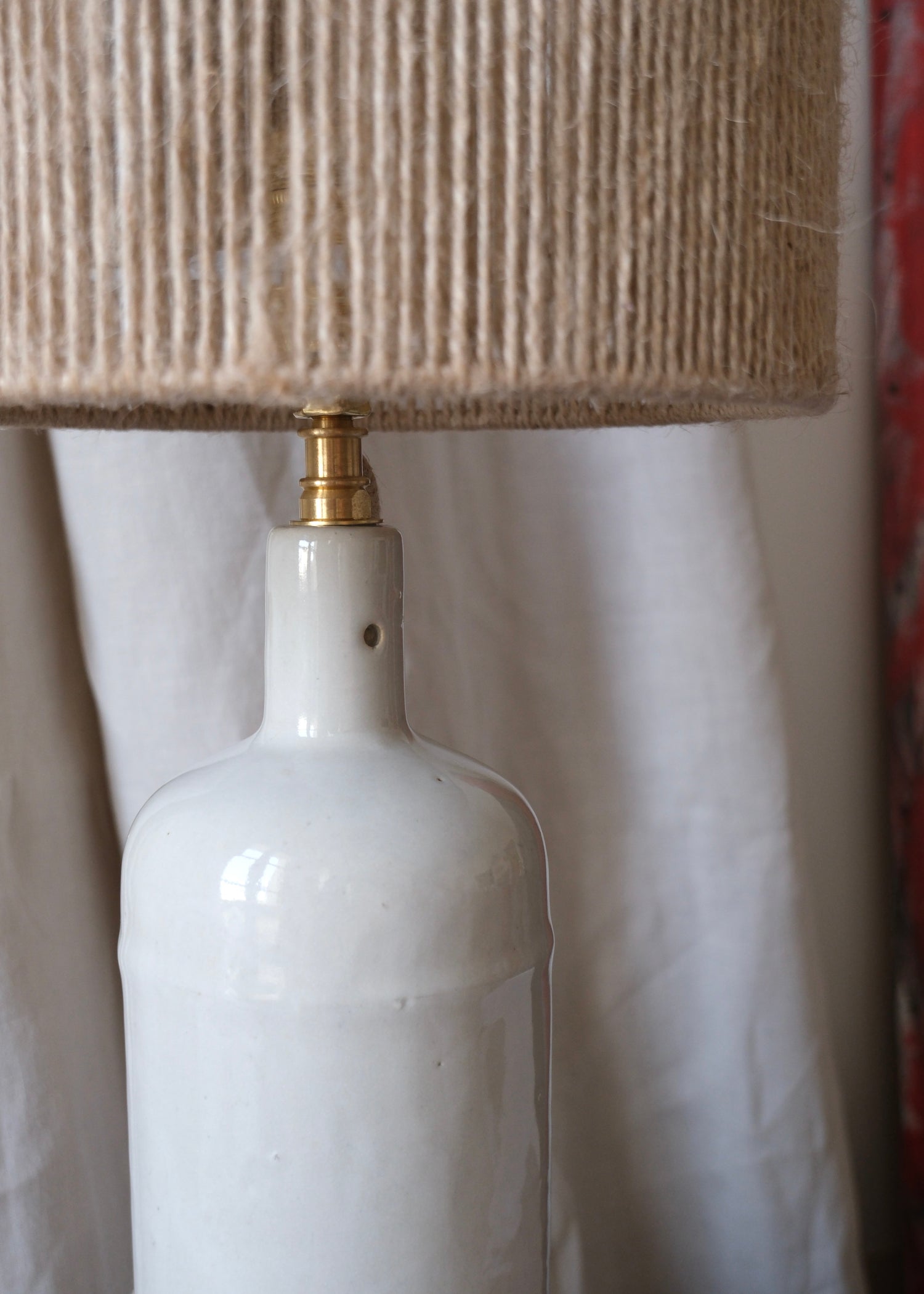 Abat-jour tressé à la main avec un fil de jute et câble neutre en jute.