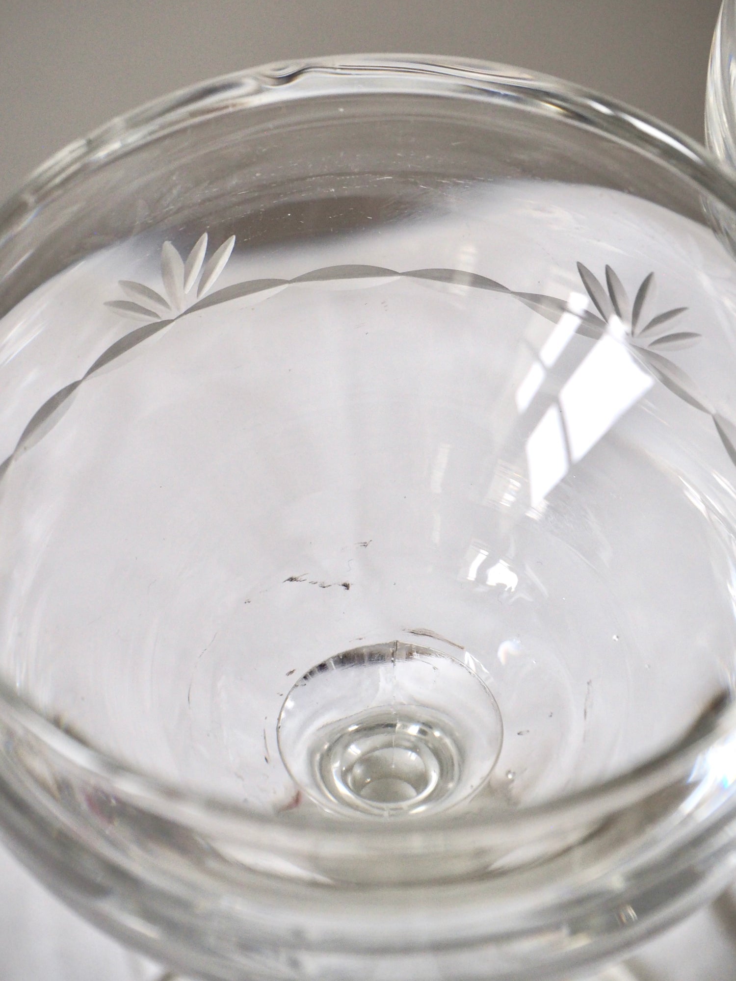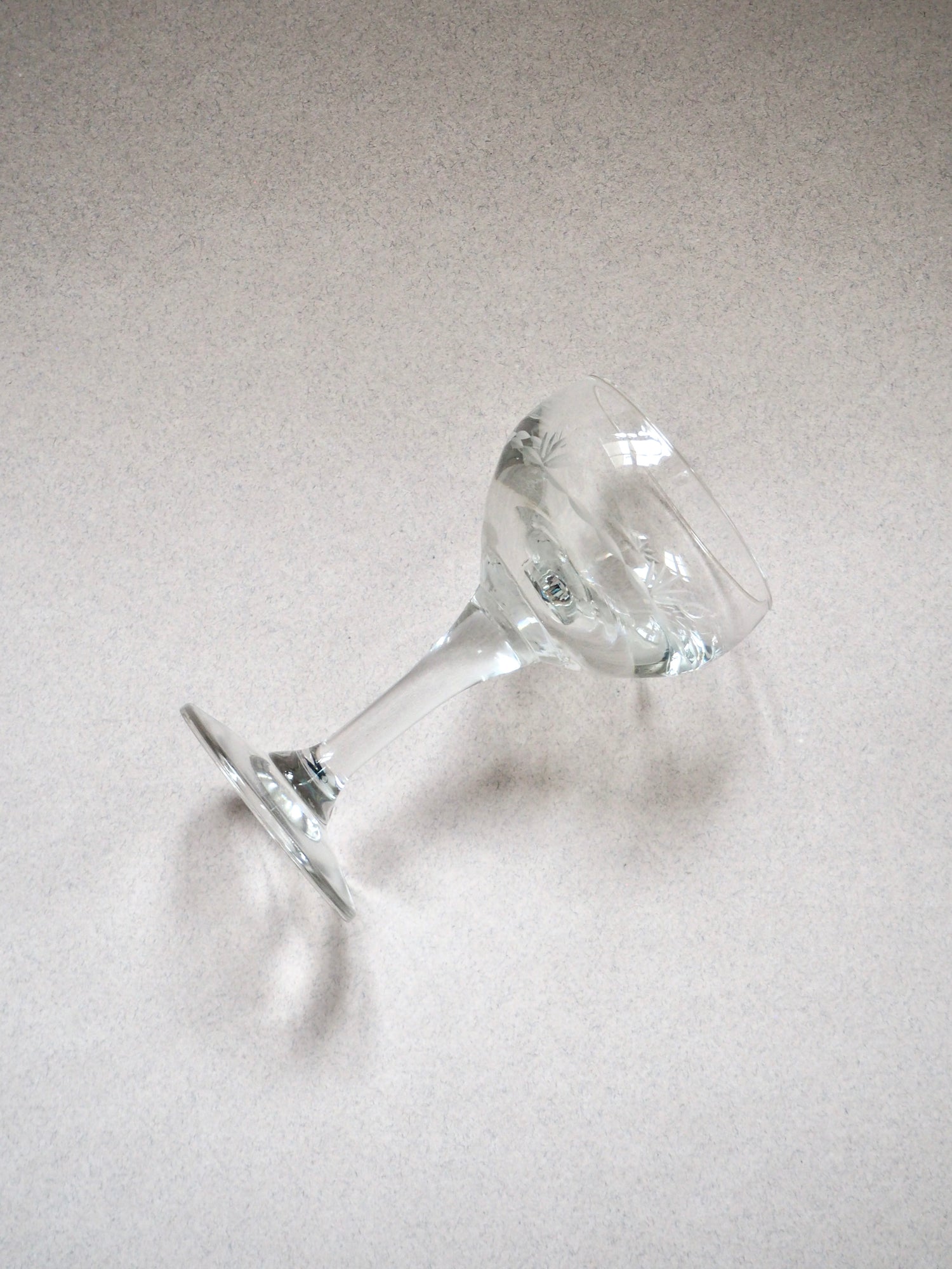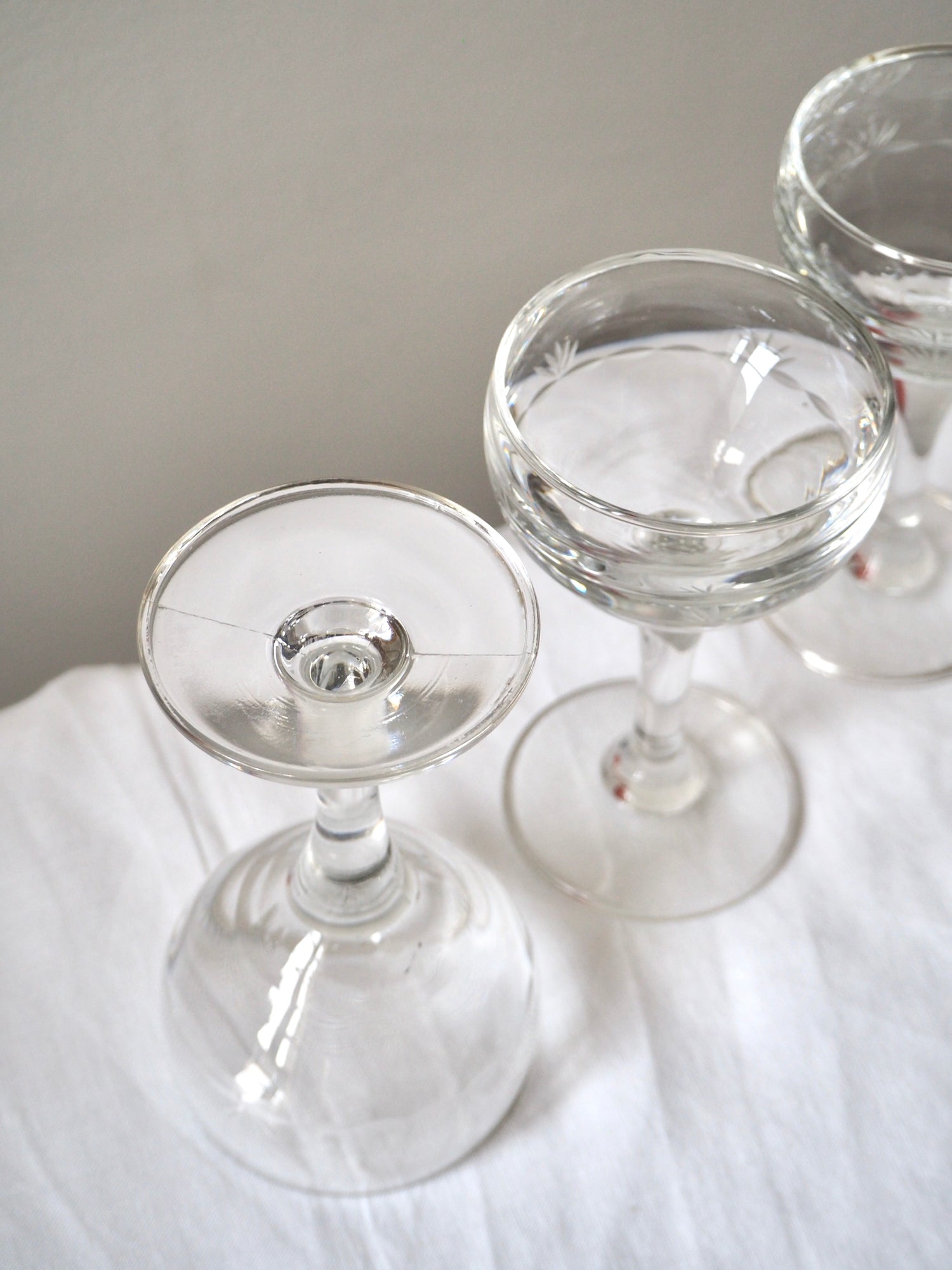 Ensemble de quatre verres à pied en verre moulé et ciselé, idéals pour l'apéritif ou le vin blanc. Verre épais et de belle qualité.